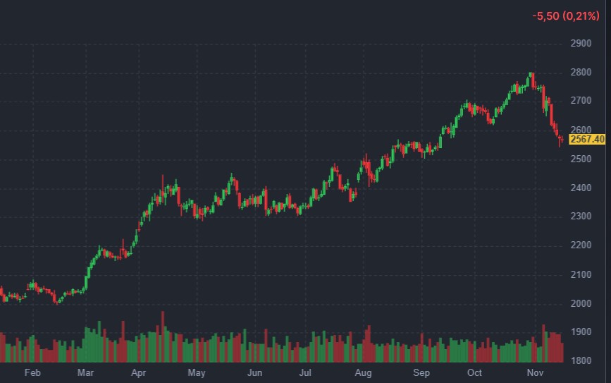 L’or vient de perdre entre 8 et 10 % depuis les plus hauts et l’élection de Donald Trump qui a donné le signal de la correction.