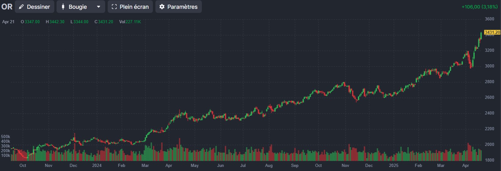 Cette nouvelle hausse est d’autant plus symptomatique qu’elle intervient dans un contexte à nouveau baissier pour les marchés financiers. La demande d’or physique est actuellement considérable. Ceux qui pensent que l’or est cher à plus de 3 400 dollars l’once, regretteront sans doute de ne pas en avoir acheté quand l’once sera à 4 500 $ !