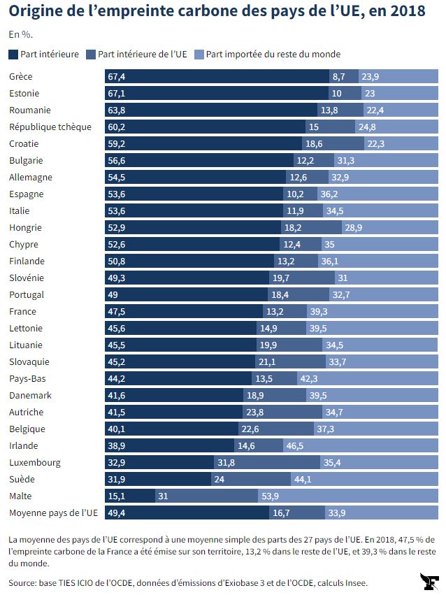 Que 52 % de notre empreinte carbone sont liés à nos importations ! Et c’est une évidence qui est ici chiffrée et mise sous la forme d’un graphique très compréhensible.