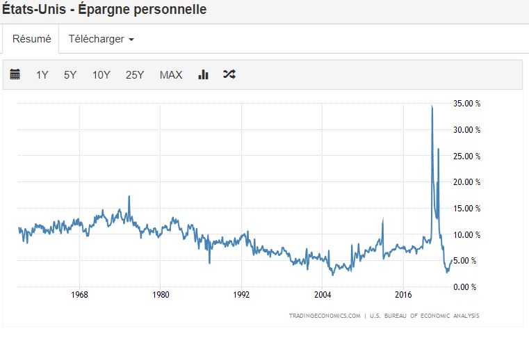 Privés des magasins ouverts et de la consommation autre que « essentielle » le taux d’épargne des Américains a explosé, bondi littéralement à 35 % !
