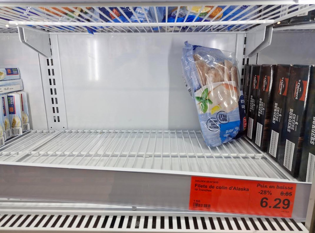 Mes concitoyens Normands ne se sont pas trompés sur la « bonne affaire » du moment à savoir le kilo de filets de colin en chute libre de 28 % à 6.29 € le kilo. Ils ont vidé l’armoire de congélation d’Aldi et il ne me restait qu’un seul sachet disponible. (Ce soir c’est colin d’Alaska aux échalotes).