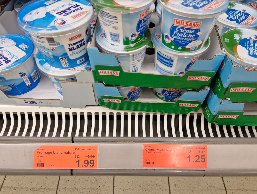 En course dépannage pour 30% des achats alimentaires l’aldi du coin faut bien l’affaire et j’ai bien constaté une baisse de prix sur des produits courants, par contre le fromage blanc 0% en photo est facture 1,69€ chez moi et 1,99€ en Normandie! Drôle d’uniformisation des prix.