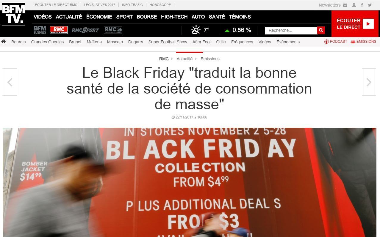 Il s’agit, alors que BFMTV encense le Black Friday et se félicite du succès avec cet article en Une de son site Internet, le patron de la Camif.fr, lui, a préféré annoncer qu’il fermerait son site ce jour-là !! Si cela peut sembler une forme de pub, et c’en est une, c’est surtout une formidable occasion de prendre le contre-pied de la crétinerie ambiante.