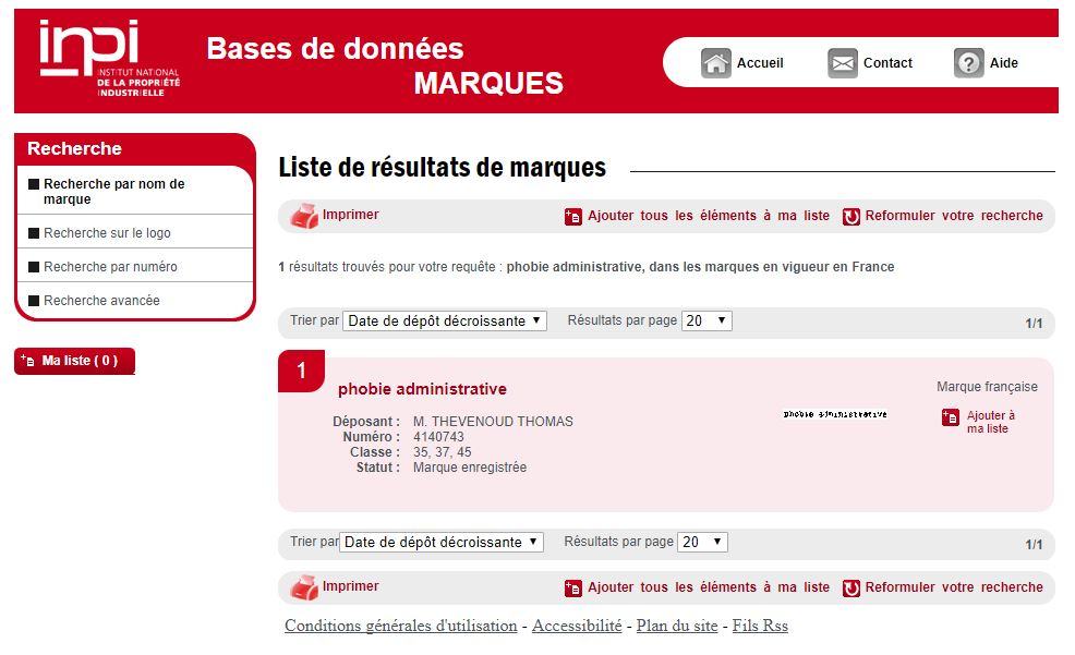 Ainsi, notre cher Toto est donc propriétaire de cette marque et peut donc faire payer une redevance à toute personne employant le terme « phobie administrative »… Vu que je viens de l’écrire 3 fois, j’espère que Toto ne viendra pas me faire un procès pour « contrefaçon »… Ce serait à tout le moins consternant…