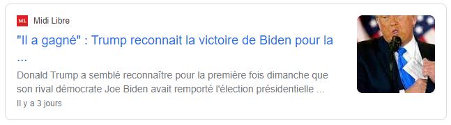 Ici, en France lorsque Trump tweet, on nous explique que Donald Trump reconnait sa victoire et je suppose que vous vous souvenez de ces informations diffusées comme des trophées de victoire il y a quelques jours.
