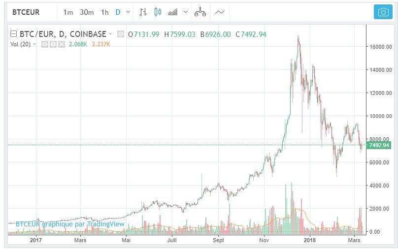 Le 1er mars, le cours du Bitcoin a connu une baisse (pour s’établir à 10 300 ou 10 400, selon les plateformes telles que CoinMarketCap et Bitfinex) consécutivement à la diffusion d’informations sur le fait que la Securities and Exchange Commission (SEC) avait commencé à enquêter sur le marché des cryptomonnaies.