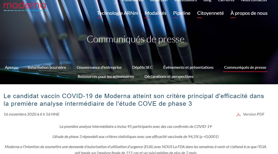 Citons Moderna… un vaccin efficace sur… 95 personnes