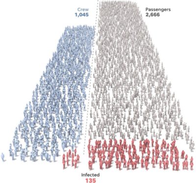 Sans oublier l’annulation du grand prix de formule 1 en Chine à Shanghai ou encore la croisière de l’angoisse où nous atteignons 173 infectés… avec 39 cas de plus en une journée. Vous pouvez colorier en rouge les nouveaux infectés pour vous donner une idée. Chacun attend son tour dans un huit clos digne du pire film de science-fiction américain.