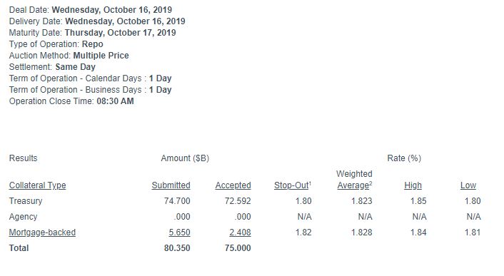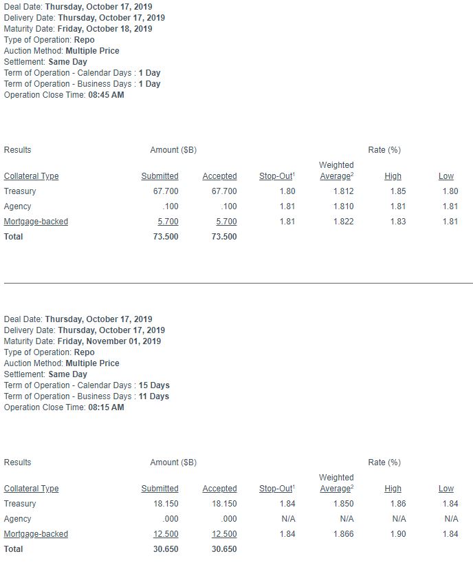 Le 17 octobre la FED a injecté presque 104 milliards de dollars… alors qu’elle n’adjuge normalement « que » 75 milliards de dollars au maximum chaque jour (73 + 30 milliards).