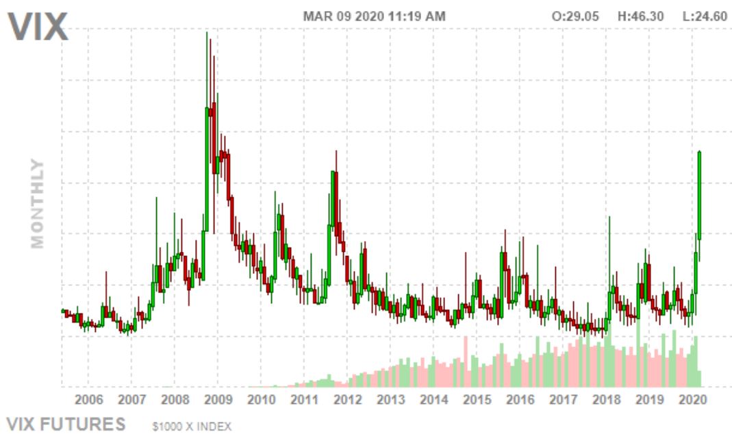 Le VIX c’est l’indice « de la peur ». Enfin c’est le surnom, en vrai, c’est l’indice qui mesure la volatilité ou le degré de « fluctuation » des cours.