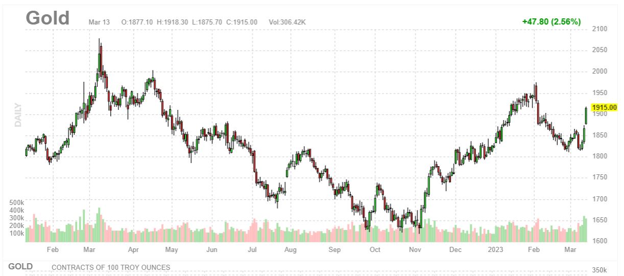 Et cette hausse de l’or est particulièrement visible ces dernières heures alors… que les taux montent. Mais en réalité ils montent sans plus monter, puisque là la Banque centrale américaine vient d’annuler l’un des effets majeurs d’une hausse de taux à savoir le krach obligataire. Mais cela ne peut se faire qu’au prix d’un nouvel épisode de planche à billets.
