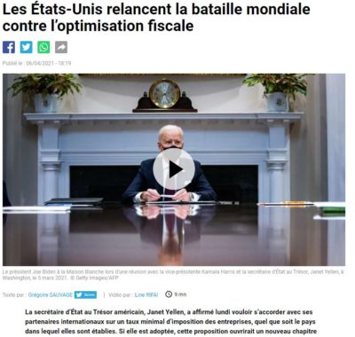 Toujours sur ces histoires d’impôts, Biden veut un impôt mondial comme je vous le disais il y a deux jours pour éviter l’optimisation fiscale.