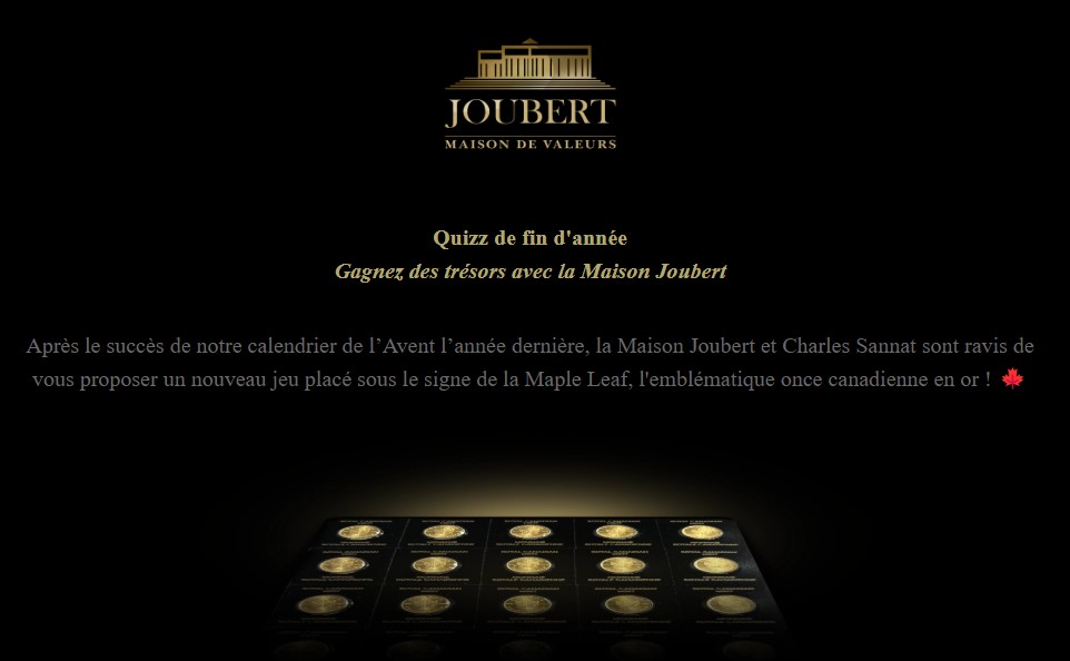 Le jeu est ouvert jusqu’au 25 décembre, vous pouvez tenter votre chance (en toute sécurité) auprès de la maison Joubert dont notre aimable communauté peut apprécier année après année, le sérieux et la fiabilité dans les transactions.