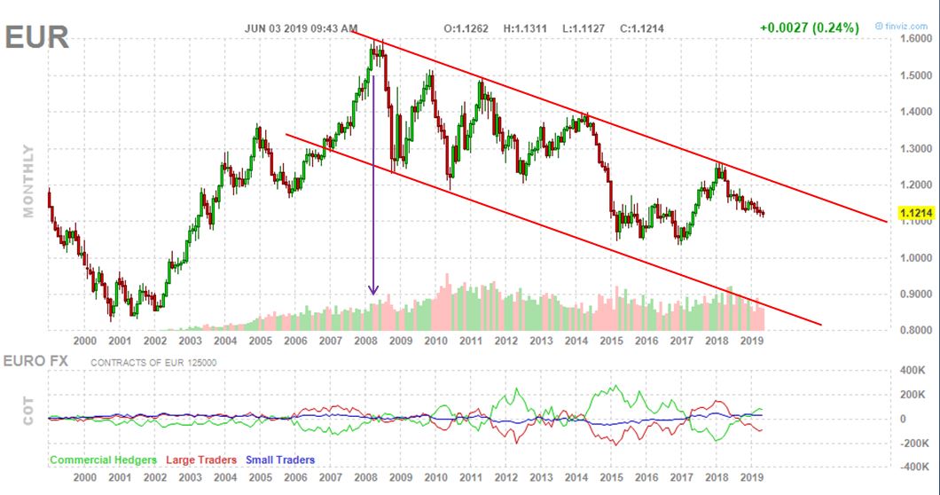 Depuis plus de 10 ans la tendance lourde de l’euro est … à la baisse !
