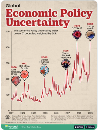 L’incertitude mondiale atteint des sommets presque similaires à ceux de la crise COVID à 429,8 à quelques « pouièmes » du record historique de mai 2020 pendant la pandémie de coronavirus.