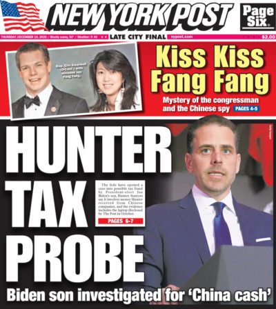 Mais comme vous pouvez le voir sur la « Une » du New-York Post d’hier c’est surtout que « Biden son investigated for China cash ». En clair ?