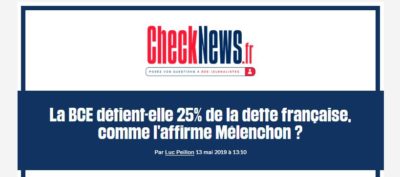 - La BCE détient-elle 25% de la dette française, comme l’affirme Mélenchon ? C’est la question que pose le journal Libération via son service de « vérification de l’information » appelé « CheckNews.