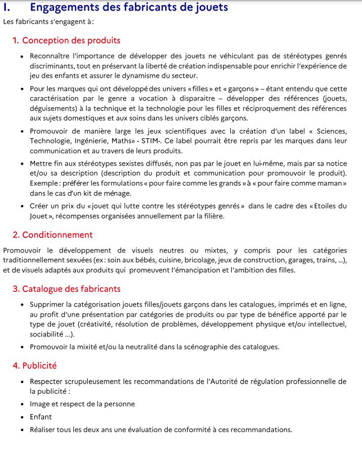 Je vous laisse lire la prose gouvernementale sur la Charte des jouets qui ne doivent plus véhiculer de stéréotypes genrés discriminants mais… en préservant la liberté de création indispensable pour « enrichir l’expérience de jeux » des enfants.