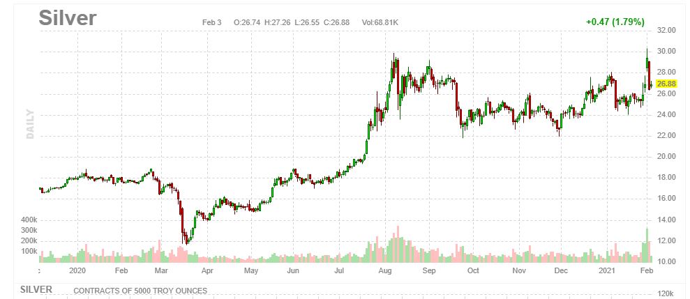 C’est « techniquement » une figure normale car les « gaps » sont toujours « refermés », là il a été fermé très rapidement, et cela ne laisse pas augurer « à ce stade » un « short squeeze » sur l’argent métal tel qu’il s’est produit sur les actions de la société GameStop.