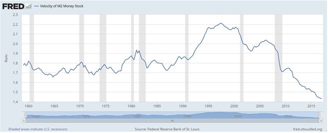 La vitesse de circulation de la monnaie s’effondre comme vous pouvez le voir sur ce graphique.