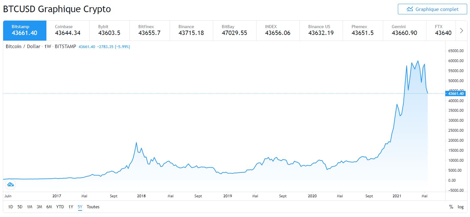 Depuis qu’Elon Musk a poignardé le Bitcoin dans le dos, c’est la chute libre pour le Bitcoin comme vous pouvez le voir sur ce graphique.