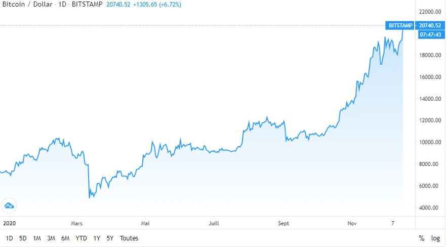 Voici les cours du BTC qui vient de dépasser les 20 000 dollars !