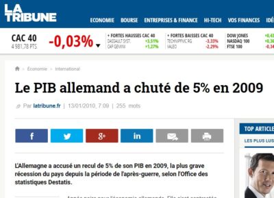 Alors certes, cela peut sembler considérable, pourtant l’Allemagne, la grande Allemagne tant vantée pour sa robustesse, a perdu 5 % de son PIB en 2009, et en 2009, l’Allemagne n’a pas fait son « Germanexit » ! Il y a juste eu une crise économique importante et majeure.
