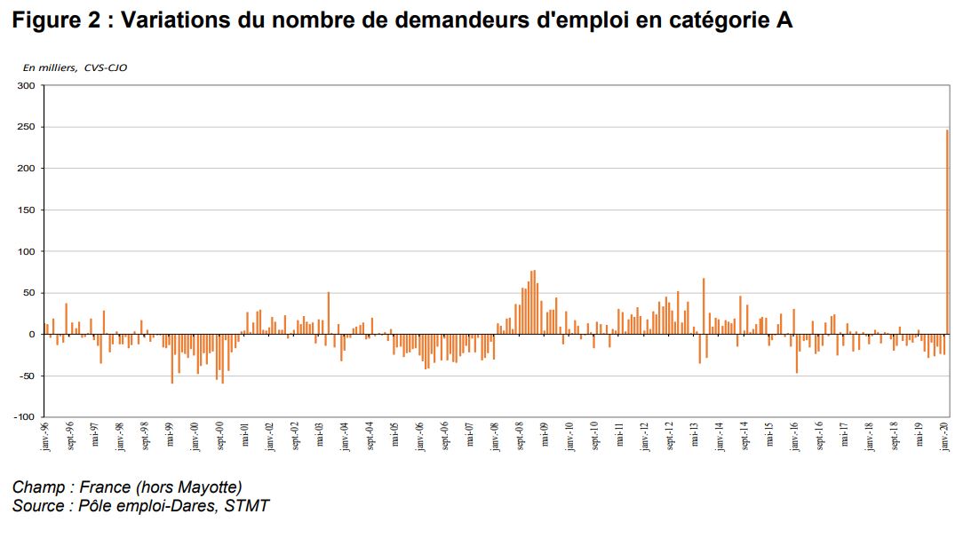 C’est une hausse historique du nombre de demandeurs d’emploi en mars avec pour le chômage de catégorie A une augmentation de plus de 7 % sur un mois.