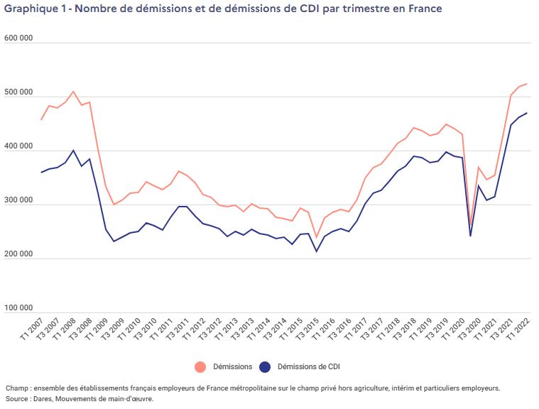 En effet avec 520.000 démissions par trimestre en 2022 la France a connu un record de démissions !