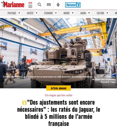 C’est Marianne qui nous livre une enquête sur le denier blindé de reconnaissance et de combat Jaguar de l’armée française qui est le cauchemar de la DGA, la Direction Générale de l’Armement.