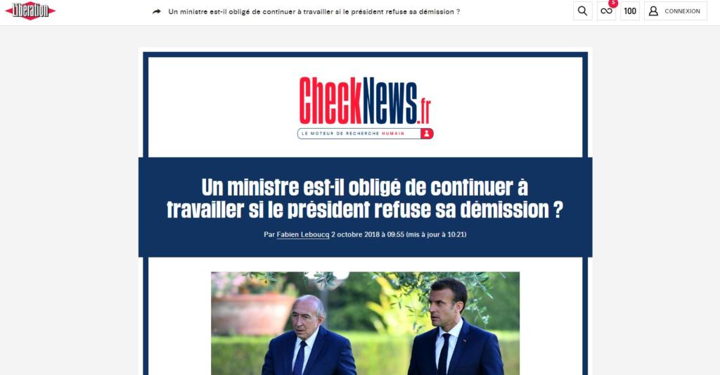 L’une des mes rubriques préférées dans Le Canard Enchaîné, c’est « le mur du con » et là Libération vient de nous en faire une belle en se demandant si « un ministre est-il obligé de continuer à travailler si le président refuse sa démission » ?