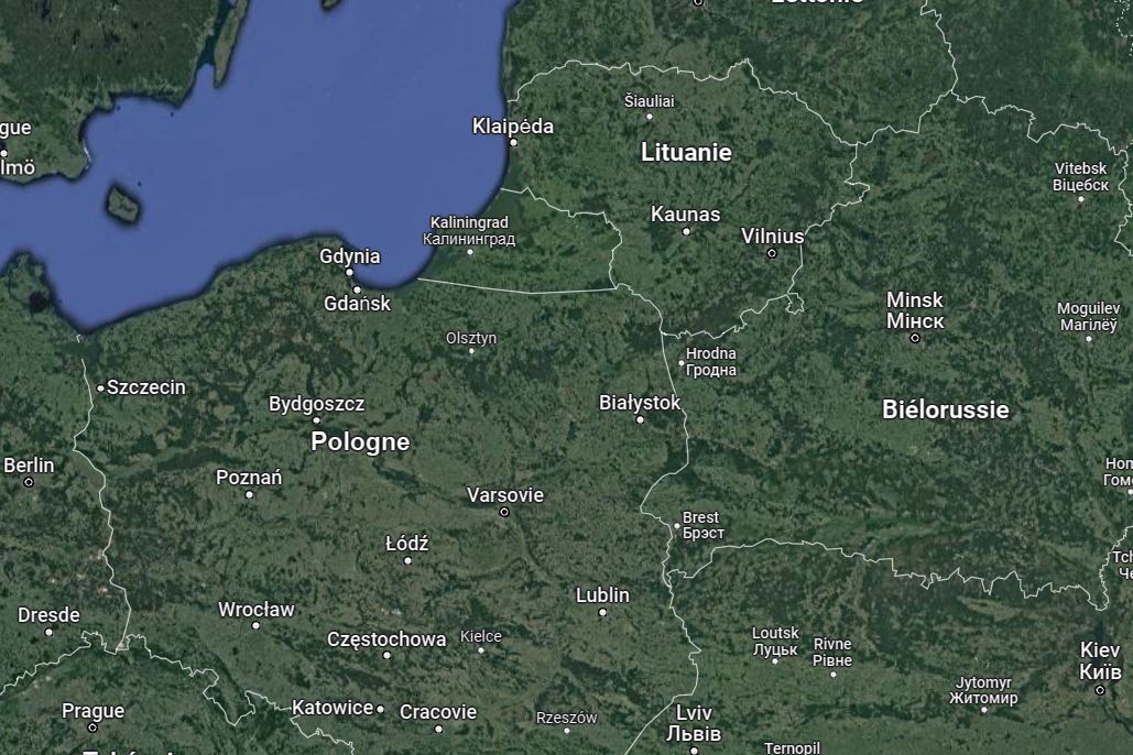 C’est Kaliningrad, un territoire russe perdu en plein cœur de l’Union Européenne, et encerclé entre la Lituanie au nord et la Pologne au sud et sans accès direct avec la Russie dont la première ville se trouve à 600 kilomètres. Vous voyez également la proximité avec l’Ukraine et la Biélorussie.