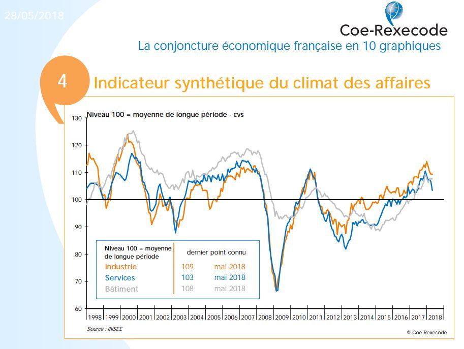Le climat des affaires et les anticipations des chefs d’entreprises et acteurs de l’économie se dégrade largement. C’est ce que l’on appelle « un indicateur avancé ».