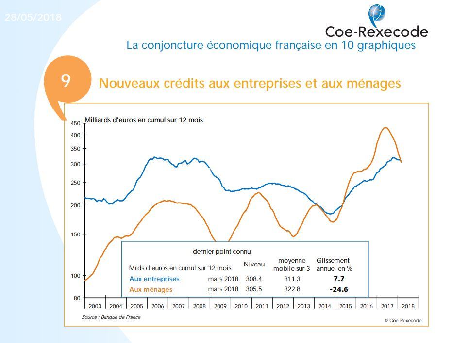 La croissance économique française repose avant tout sur les crédits et les emprunts. C’est l’endettement qui fait les investissements au sens large aussi bien des entreprises que des ménages lorsque l’on parle de l’immobilier. Or les crédits ne sont pas en baisse parce que les banques sont plus sélectives ou les taux en hausse. Les crédits baissent faute de… demande, ce qui est nettement plus inquiétant.