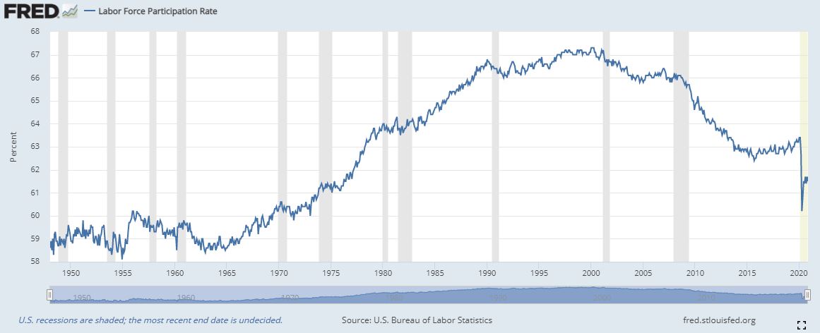 Alors aujourd’hui je vais vous présenter quelques tableaux pour illustrer le drame social qui va se jouer aux Etats-Unis. Biden ou Trump, peu importe le vainqueur, la situation économique est dramatique.