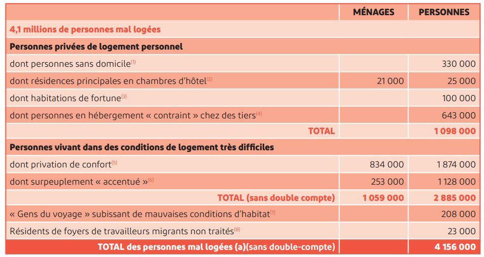 En annonçant presque 4.2 millions de mal-logés en France la Fondation Abbé Pierre est totalement contre-productive dans le message qu’elle passe aussi bien à l’ensemble de la société que, plus grave aux pouvoirs publics, qui font semblant de les écouter, et s’empressent chaque année de ne rien faire.