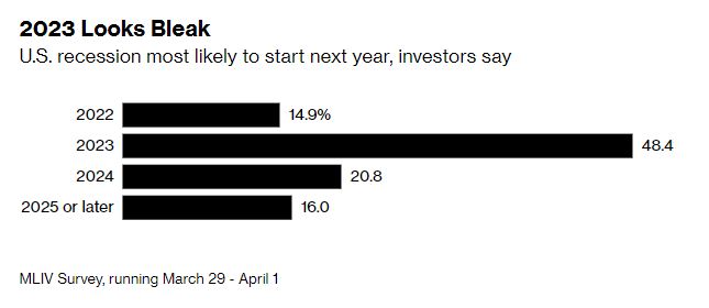 Lorsqu’on leur a demandé quand la prochaine récession commencerait, seuls 15 % ont répondu cette année. Près de la moitié ont connu une récession aux États-Unis l’année prochaine ; 21 % ont signalé 2024 comme probable et 16% ont vu 2025 ou plus tard.