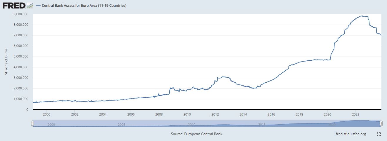 Historiquement le bilan de la BCE évolue entre 1 000 et 2 000 milliards d’euros ce qui est déjà pas mal.