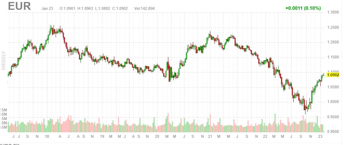 Comme vous pouvez le voir ci-dessous, depuis quelques mois, la devise de la zone euro évolue en forte hausse face au dollar américain.