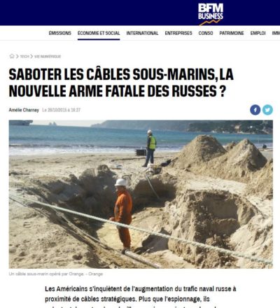 Comme vous pourrez le lire et le vérifier sur cet article qui date de 2015 et c’est de BFM une source non-complotiste ni pro-russe, cela fait des années, que les Russes repèrent nos câbles sous-marins.