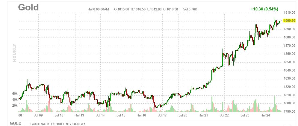 Si vous regardez le comportement de l’or nous sommes dans une montée forte et relativement linéaire. Le mouvement de hausse est presque parfait et vous pouvez voir une belle ligne droite de tendance haussière.