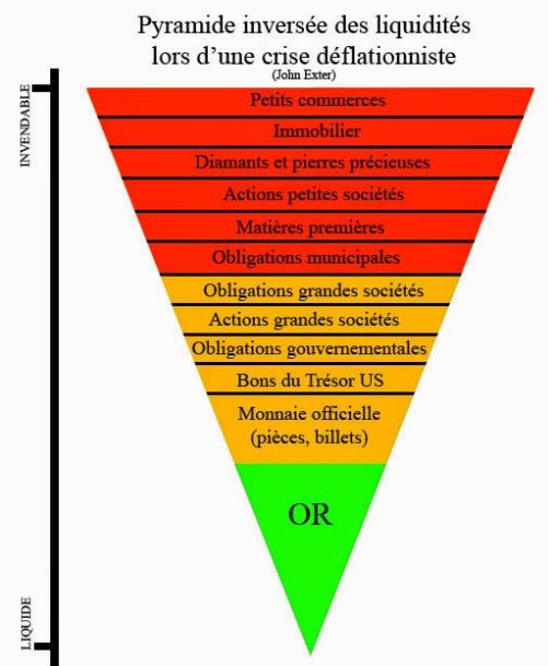L’économiste américain Exter est devenu célèbre pour sa pyramide inversée des liquidités en cas de déflation.