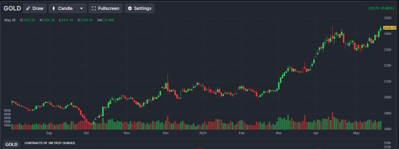 En repassant largement au-dessus du seuil symbolique des 2400 dollars l’once, le métal jaune confirme la reprise de son mouvement haussier après une légère consolidation suite à sa très forte hausse de ces dernières semaines.
