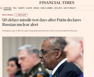 D’autre part, il ont dit qu’il n’était pas nécessaire d’augmenter le niveau d’alerte des forces nucléaires américaines afin, là encore, de ne pas alimenter une escalade nucléaire.