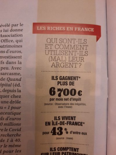 Le magazine est rempli d’exemple de milliardaires français qui sont effectivement riches à milliards. A côté, un riche de 6 700 euros n’est qu’un pauvre !