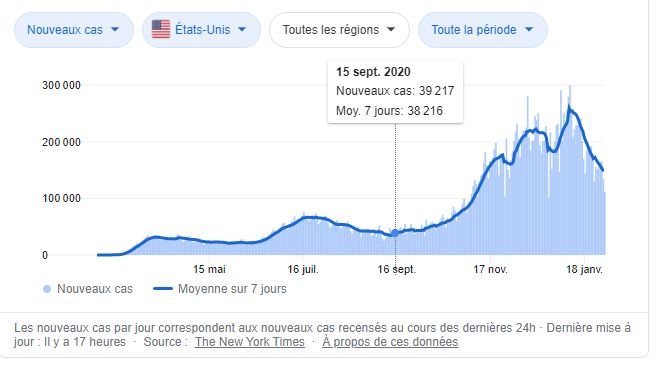 Une étude avait démontré une corrélation entre le climat (75 % d’humidité, 7,5°C de température moyenne) et des pics épidémiques, en différentes régions du globe. Les contaminations flambent depuis quelques semaines, parce que ce début d’hiver est très humide et peu froid. Les mesures de distanciation sociale n’agissent qu’à la marge.