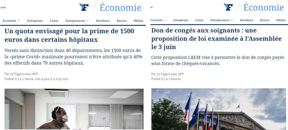 Voilà ce que dit un article du Figaro, qu’il faut mettre en relation avec un autre article du même Figaro qui nous explique que « l’Assemblée nationale examinera le 3 juin une proposition de loi LREM visant à permettre le « don de congés payés sous forme de chèques-vacances » aux soignants, un texte soutenu par le gouvernement ».