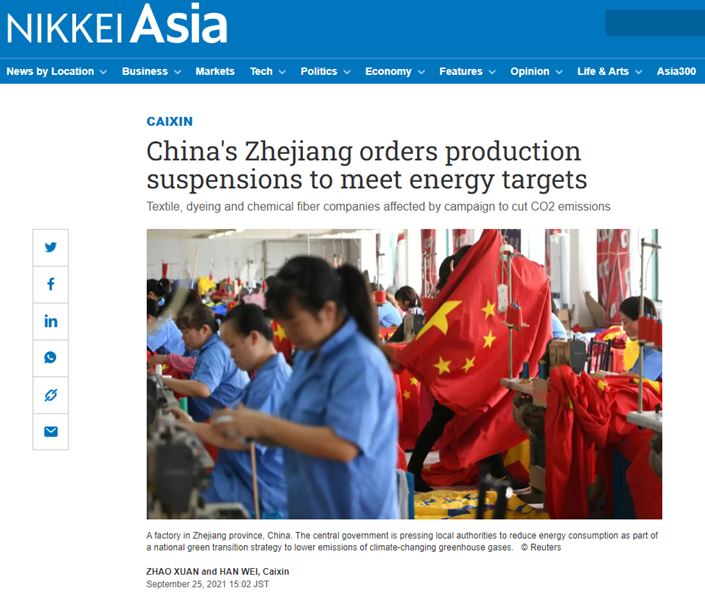 La Chine a pris la décision de couper les usines de production quelques jours par semaine, non pas seulement à cause du manque d’électricité ou du prix qui augmente,