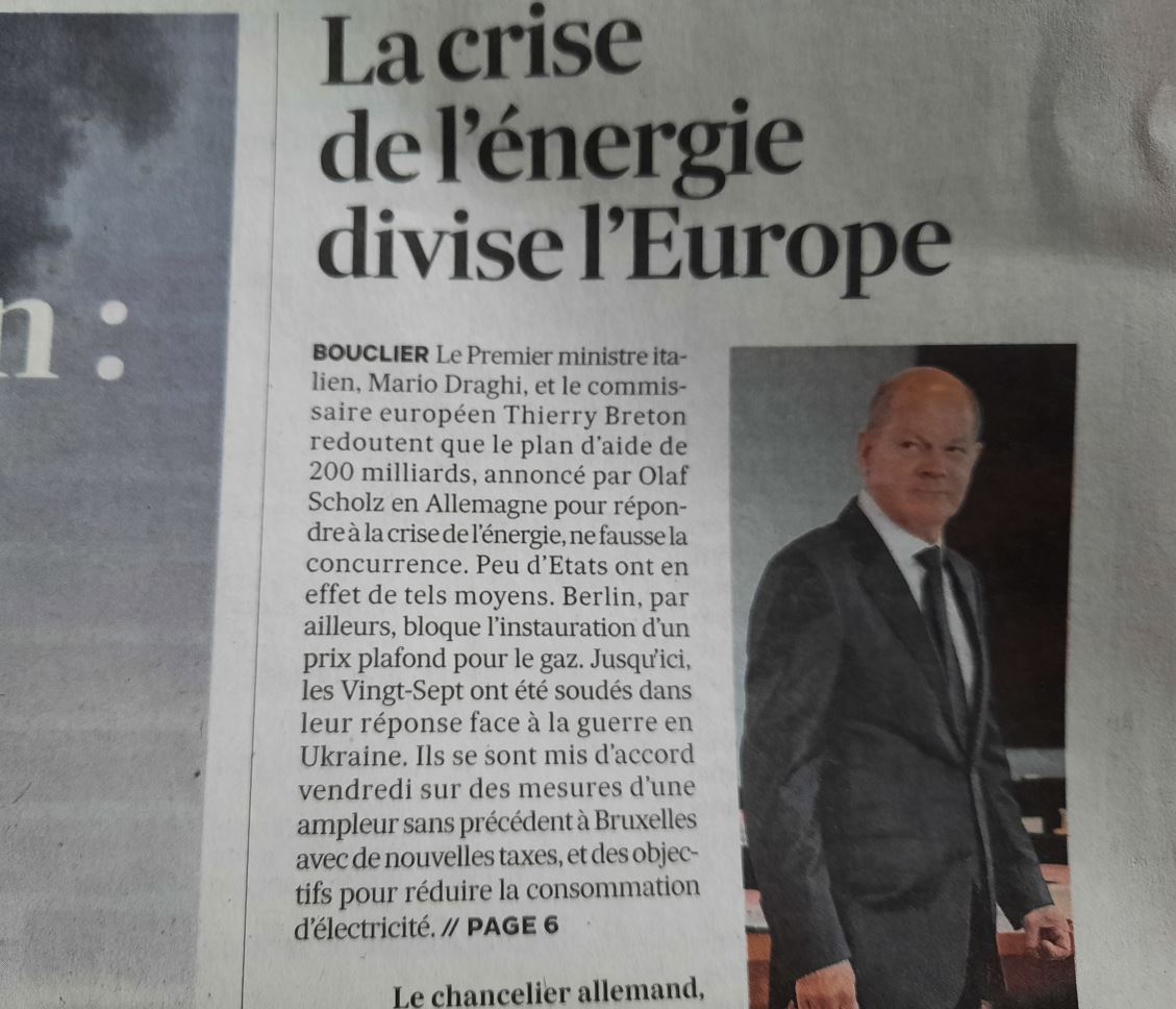 En gros l’Allemagne est le pays qui a le plus de marge de manœuvre budgétaire pour aider ses entreprises, les autres pays européens ne pourront pas suivre… Et c’est ainsi que l’Allemagne peut mettre le bazar en zone euro et que nous continuons à fixer le prix de l’électricité à partir des prix du gaz qui n’ont strictement rien à voir.
