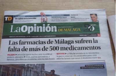 A la « une » du journal espagnol L’Opinion de Malaga, « les pharmacies de Malaga souffrent de l’absence de plus de 500 médicaments ».